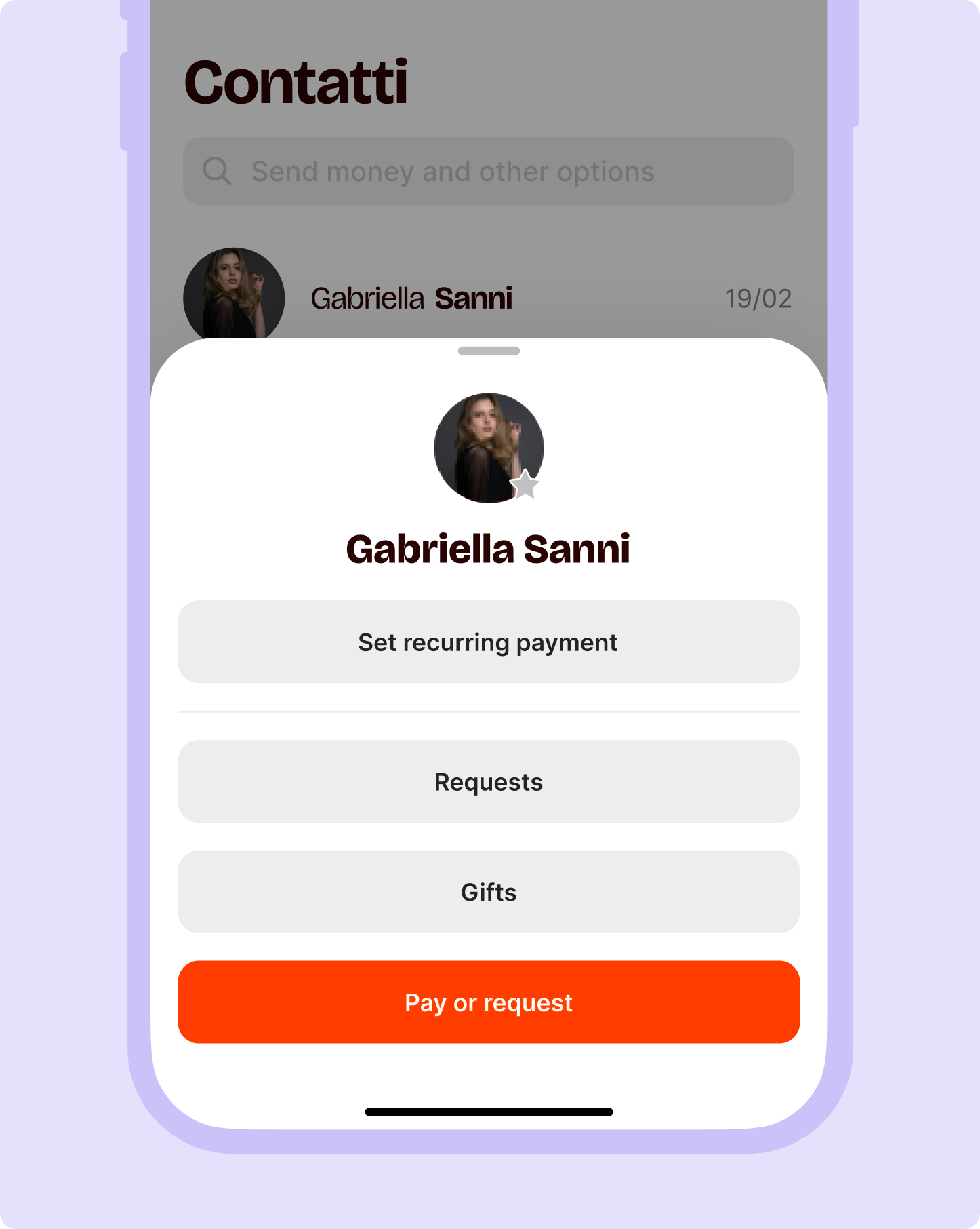 With your contacts, you have the most frequent actions close at hand. Tap a contact's icon to see their phone number and check if there are any active recurring payments. Or set one up!