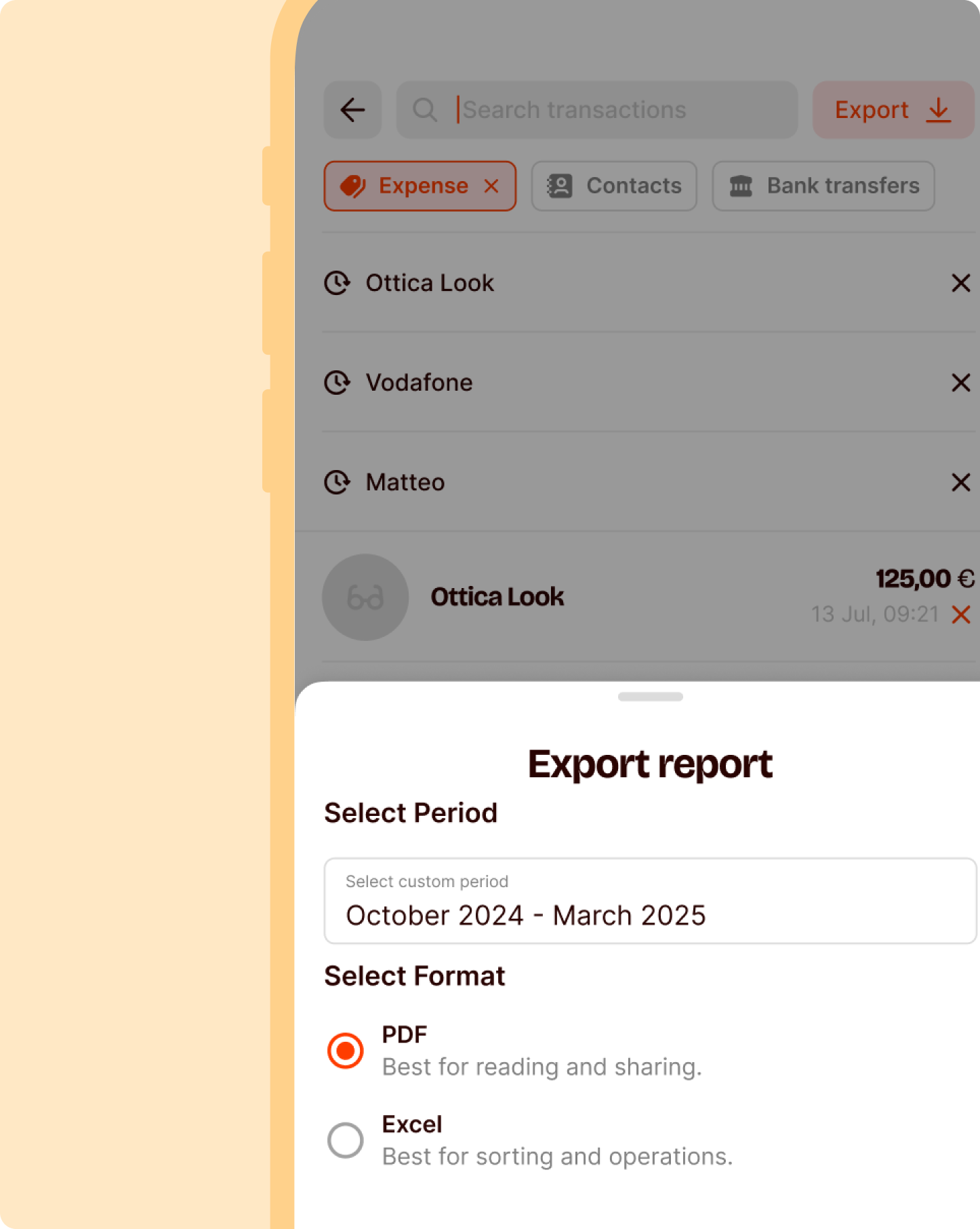 On your profile, you will find your transaction history. Use the search bar and choose filters to see how much you spent at your favourite bar or how much money you paid back to your best friend. And, if you need it, download a table of your annual or monthly transactions to always have it handy.