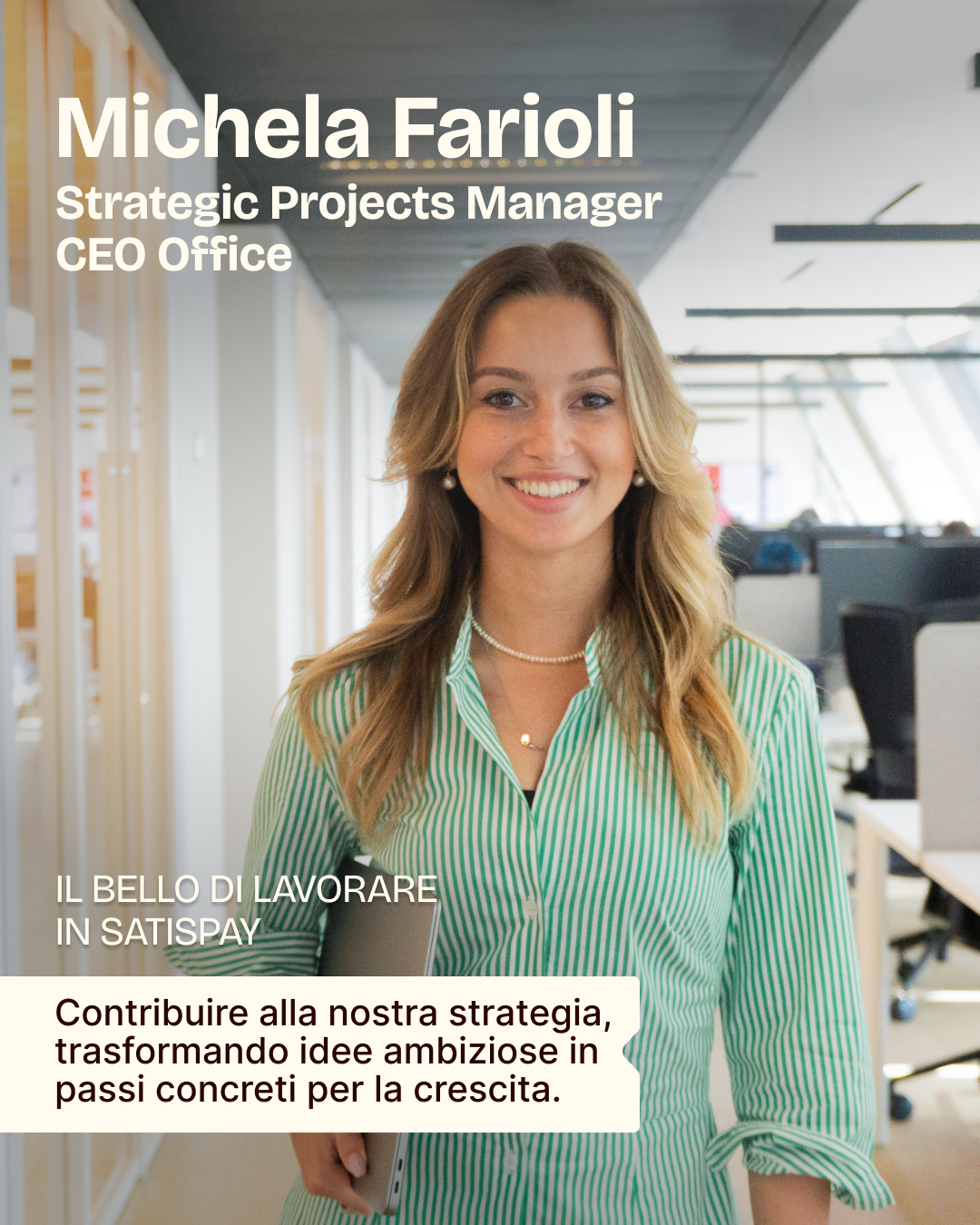 Siamo ambiziosi e crediamo nella nostra visione, ma per noi contano anche i momenti condivisi. Lavorare in Satispay significa contribuire a progetti importanti, ma anche costruire relazioni, divertirsi e crescere insieme.