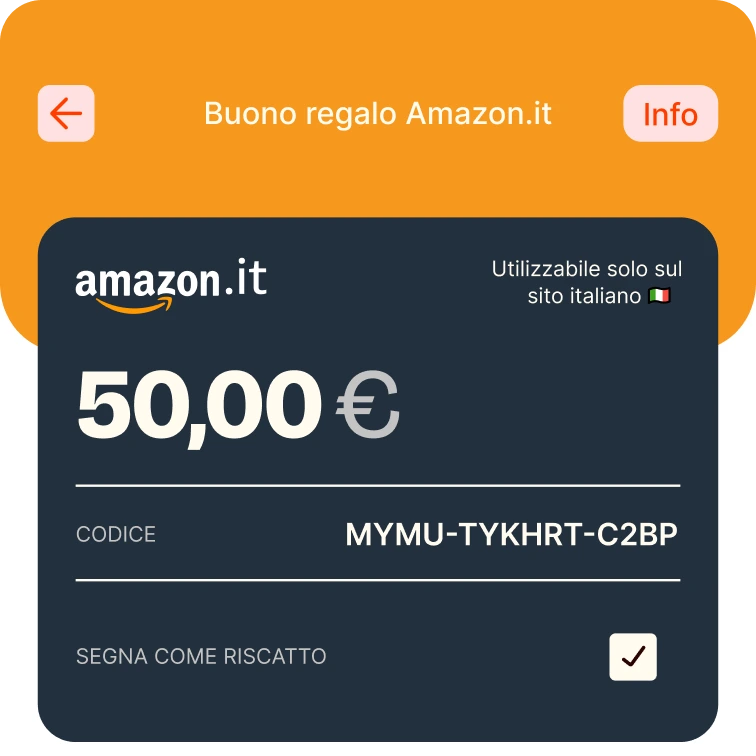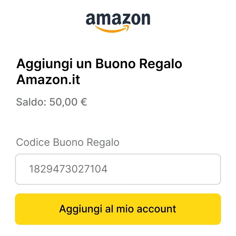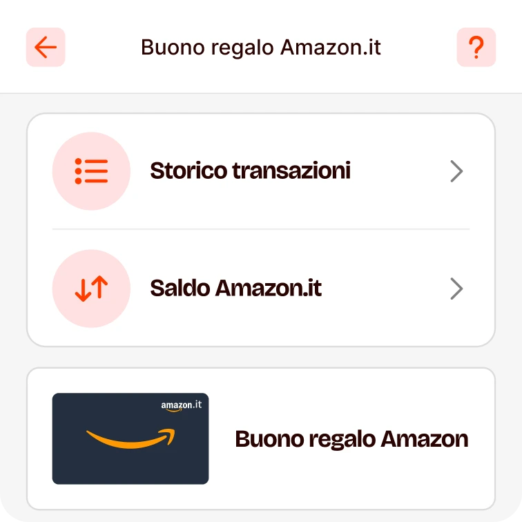 Dalla sezione "Buoni Regalo Amazon.it" nell’app Satispay, premi su "Riscatta su Amazon.it".