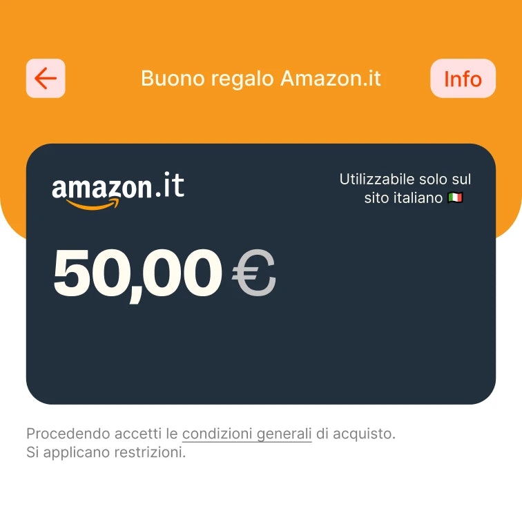 Seleziona il Buono facendo tap su "Buono Regalo Amazon.it". Seleziona l’importo desiderato e premi "Acquista".