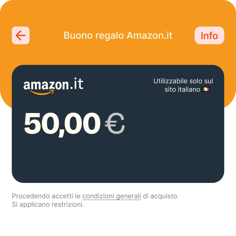 I Buoni Regalo Amazon.it* sono il modo più semplice e pratico per sorprendere chi ami con un regalo che non rischia di deludere. Con Satispay, puoi acquistare e inviare Buoni Regalo Amazon.it direttamente dal tuo telefono, in pochi, semplicissimi passi.
