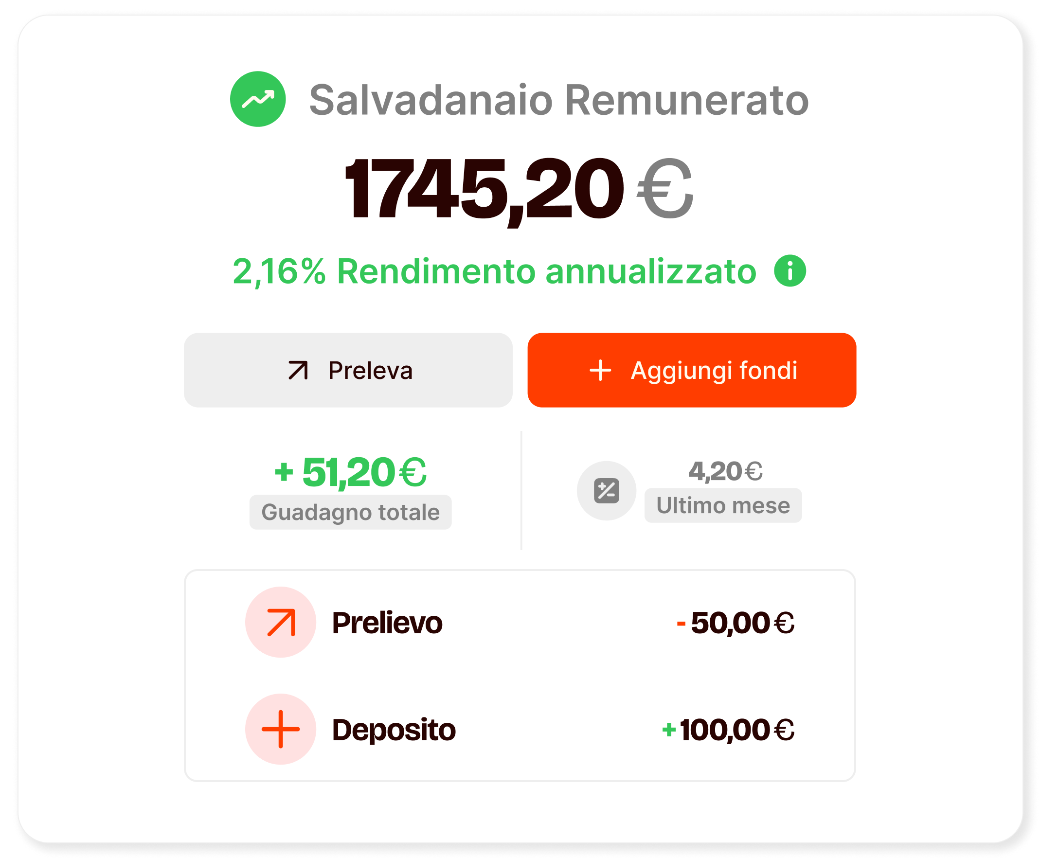 Vai sul tuo Profilo, sezione Risparmi e apri il tuo primo Salvadanaio Remunerato.