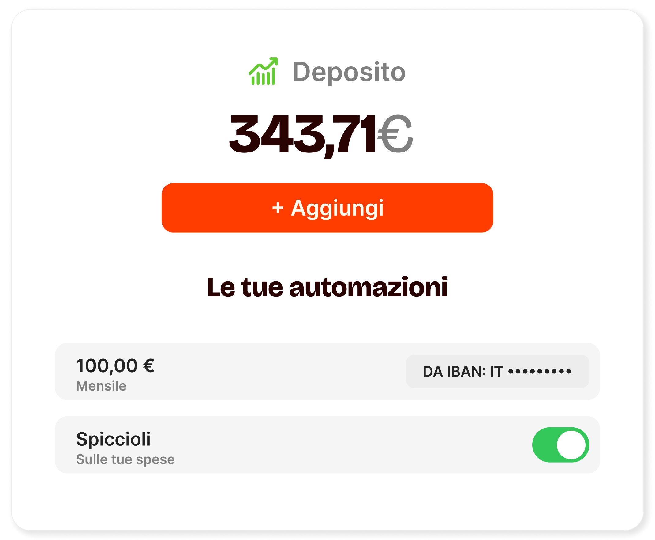 Se vuoi puoi impostare dei depositi periodici sui tuoi risparmi. Scegli l'importo e la frequenza: giornaliera, settimanale o mensile. Facile e pratico!