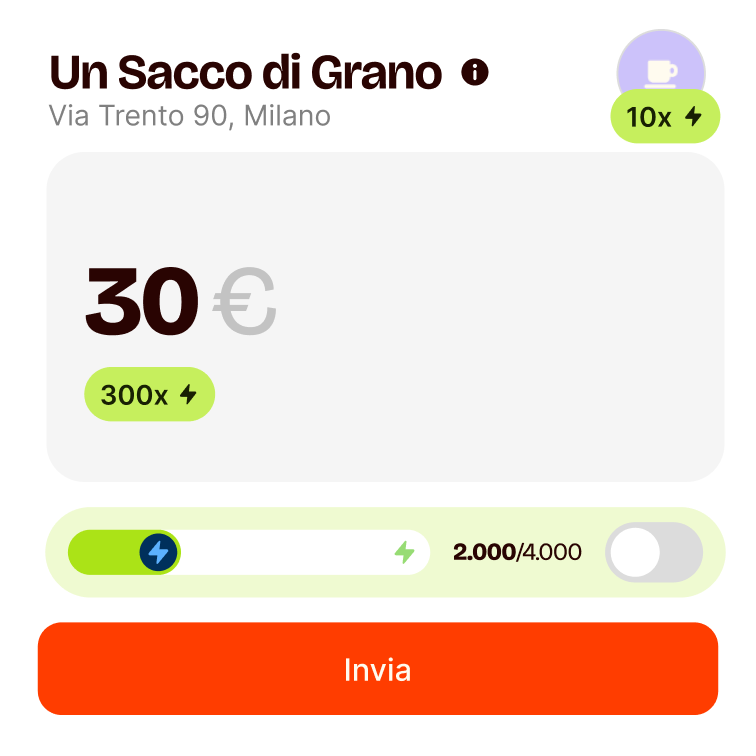 I servizi di pagamento sono forniti da Satispay Europe S.A., iscritta al n. W00000010 dell'Albo degli Istituti di Moneta Elettronica presso la Commission de Surveillance du Secteur Financier e al n. B229149 del Registro delle Imprese del Lussemburgo. Sede legale: 53, Boulevard Royal, L-2449 Lussemburgo.