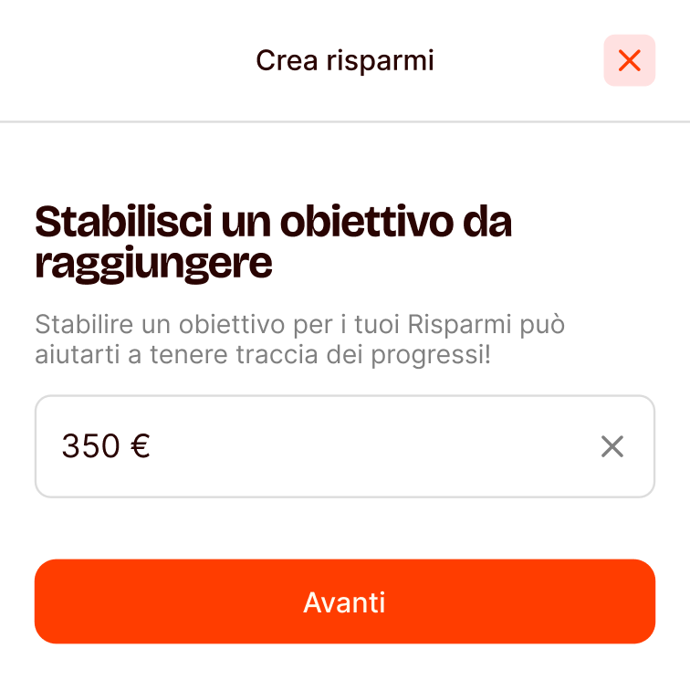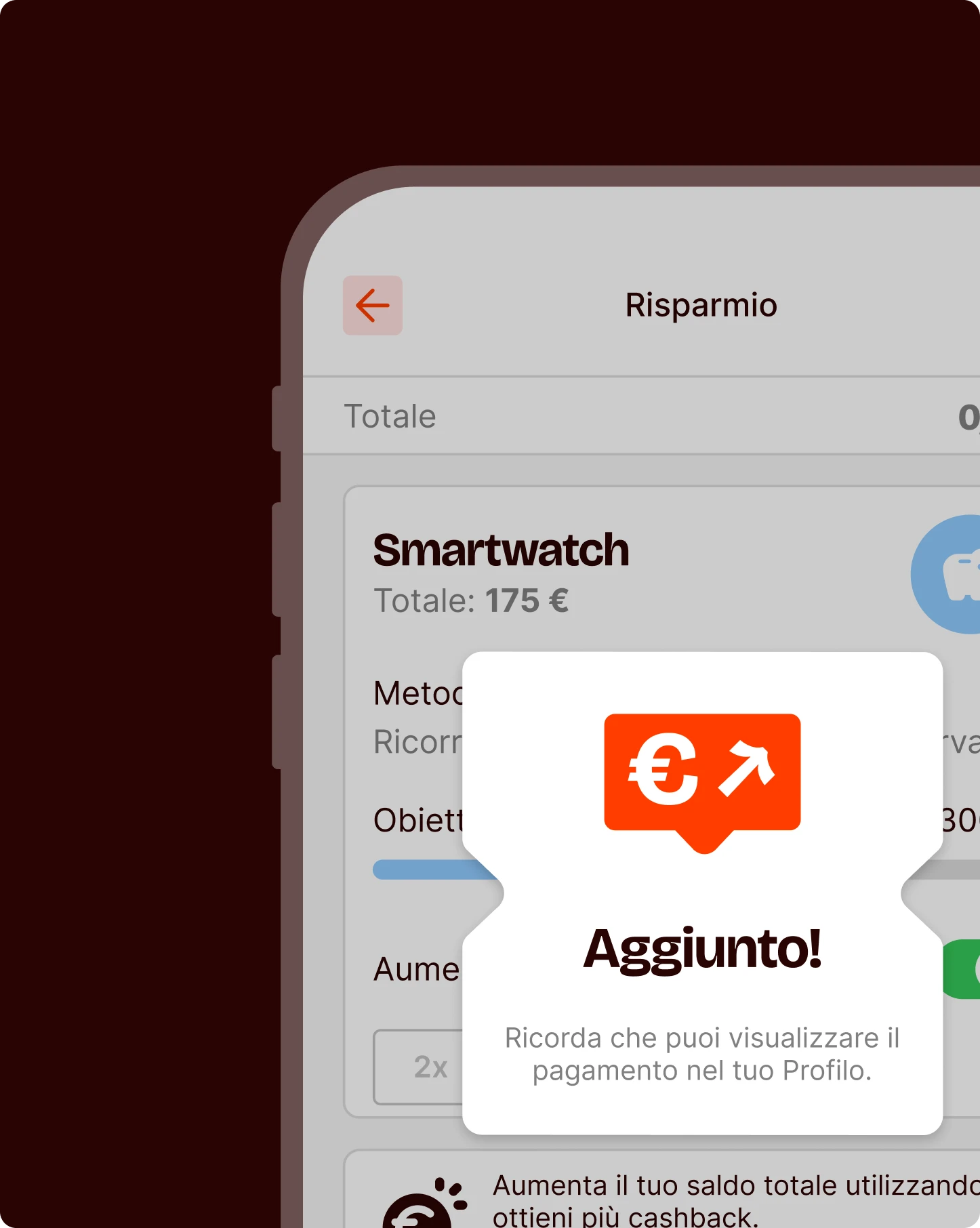 Scegli un importo da trasferire automaticamente nel Salvadanaio ogni giorno, settimana o mese. E raggiungi in un attimo il tuo obiettivo.