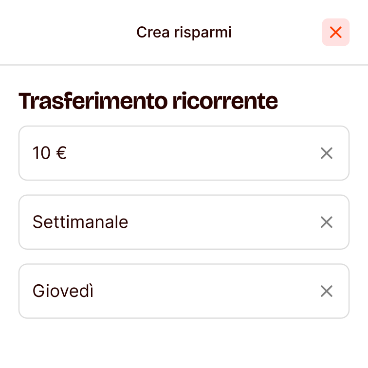 🕰️ Periodico: scegli un importo da trasferire automaticamente nel Salvadanaio su base giornaliera, settimanale o mensile.