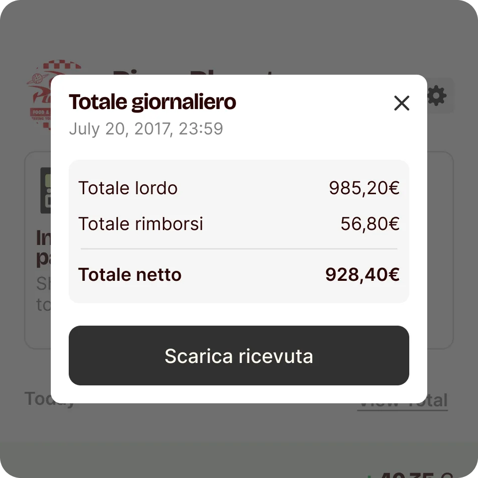 Non dovrai acquistare nessun POS aggiuntivo o spendere tempo prezioso nel gestirli: potrai accettare i Buoni Pasto Satispay insieme ai pagamenti inviati dai tuoi clienti, in un’unica transazione. Proprio comodo.