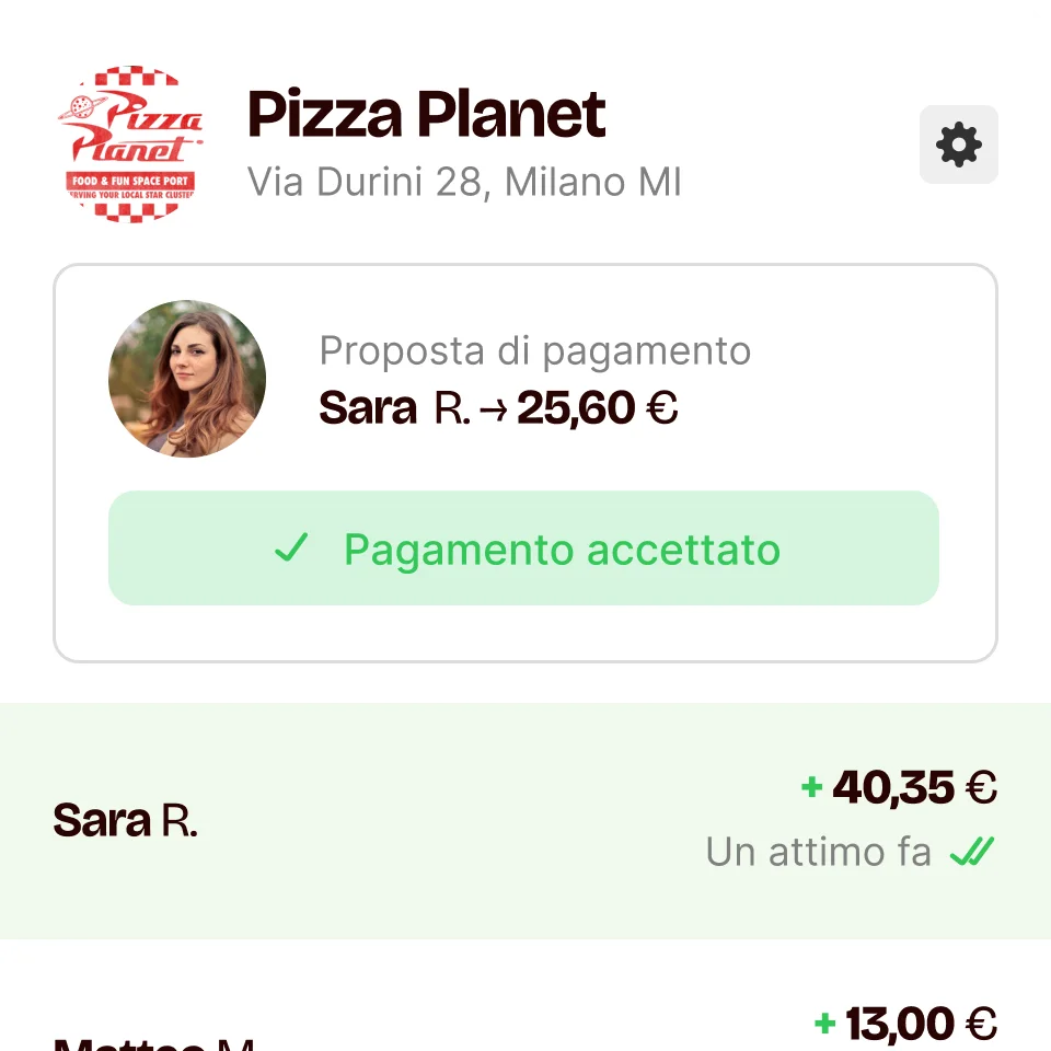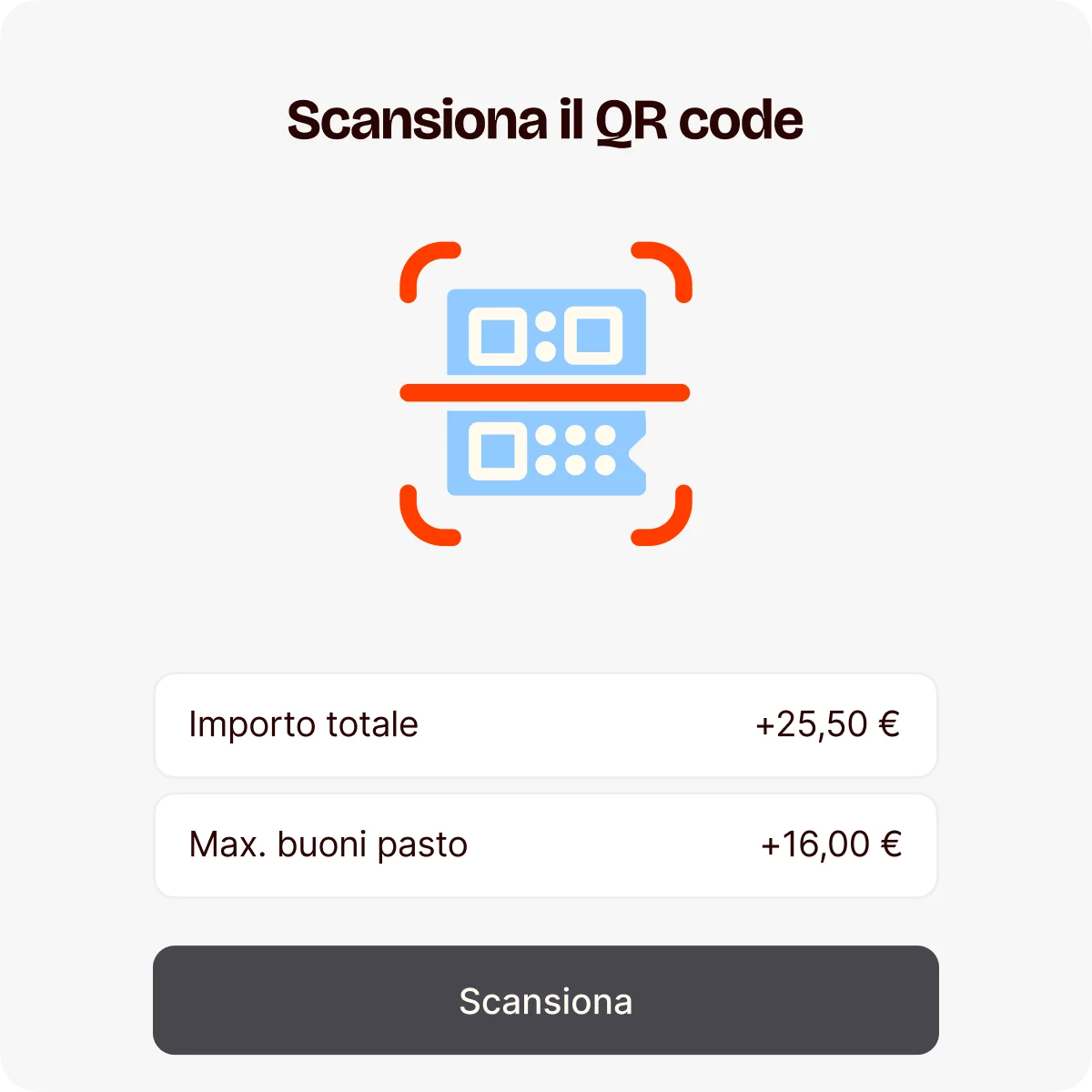 Il cliente usa i Buoni Pasto Satispay al momento del pagamento, senza la necessità di dichiararlo. Tu, accetti il pagamento tramite l'app.