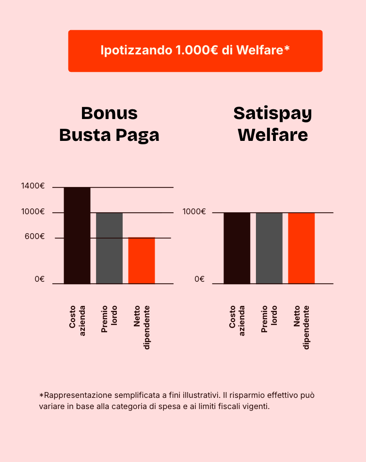 ✓ Facile da attivare, immediato da usare: il piano welfare si attiva in pochi click e i dipendenti possono usarlo subito dall'app di Satispay, senza piattaforme complicate